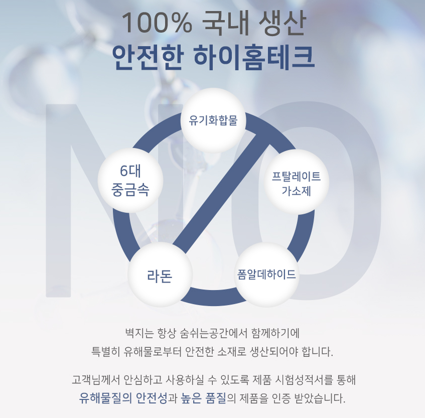 숨 쉬는 공간에서 사용하기에 유해물질이 되는 라돈, 폼알데하이드, 중금속, 유기화합물, 프탈레이트가소제 등