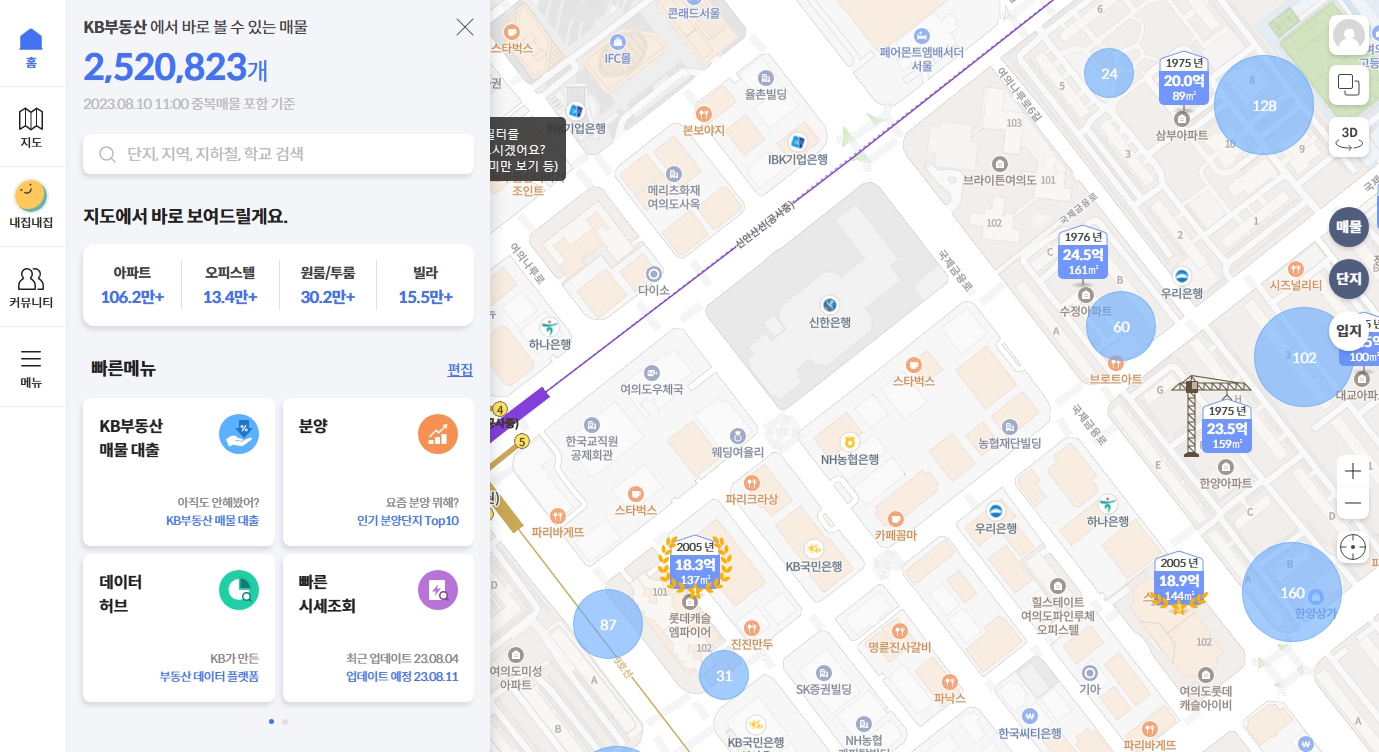 KB부동산사이트를 통해서 최신 분양 정보와 부동산의 시세, 매물, 이미지등 여러 가지 정보와 부동산 실거래가를 확인하실 수 있습니다. 빠른 메뉴로 매물대출, 분양, 데이터, 시세 조회가 가능하며 투자를 목적으로 부동산을 거래하려는 분들에게 유용한 사이트입니다.