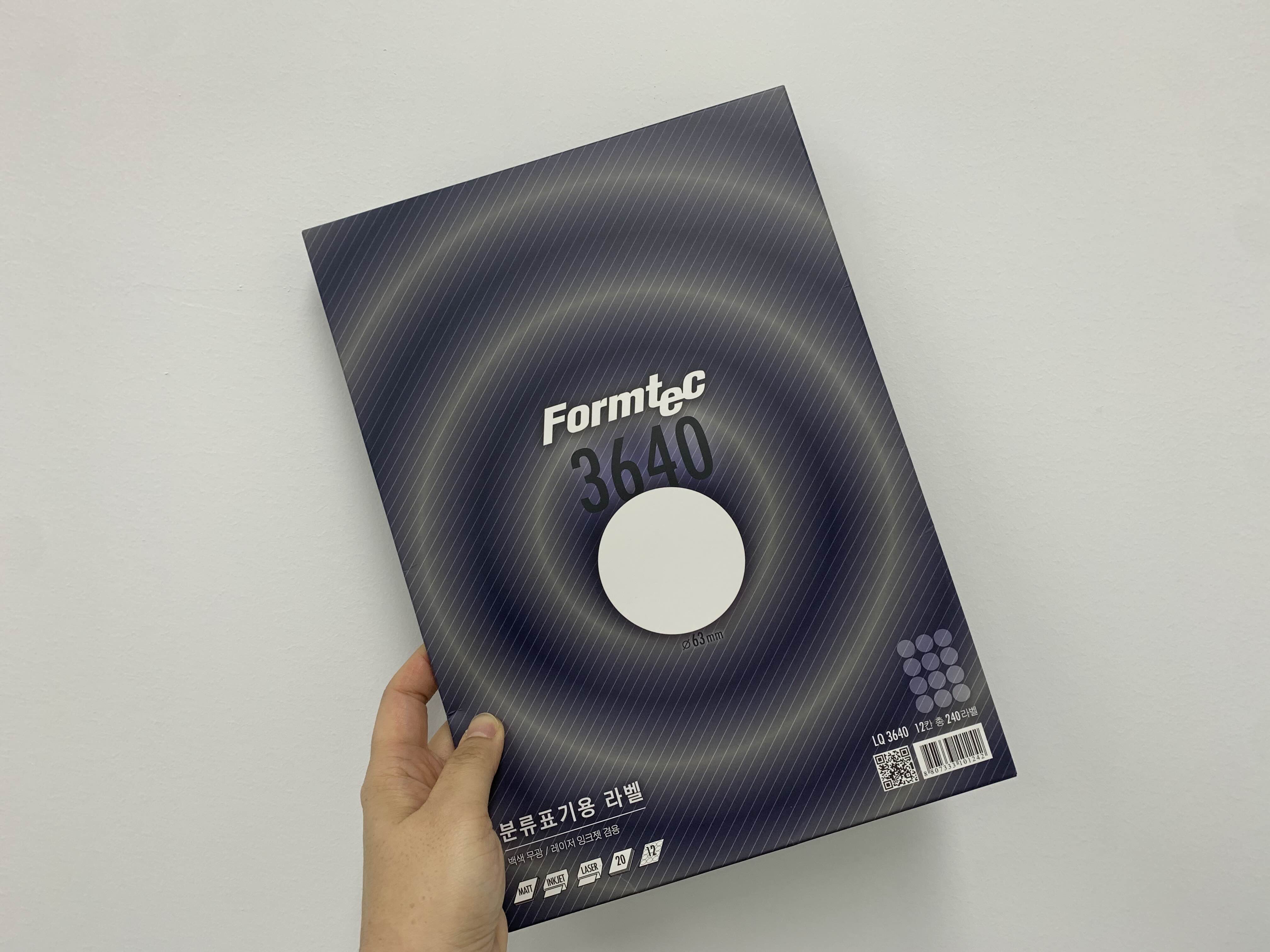 원형 라벨은 폼텍 3640 용지입니다.