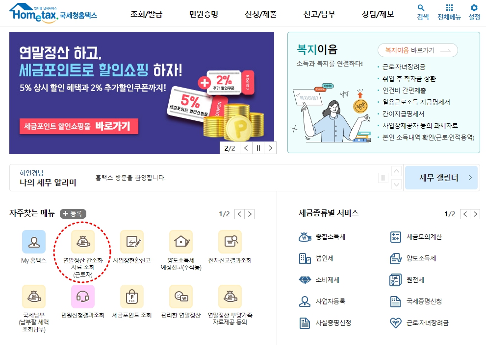 국세청 홈택스 홈페이지를 통해서 연말정산 간소화 자료를 다운로드할 수 있어서