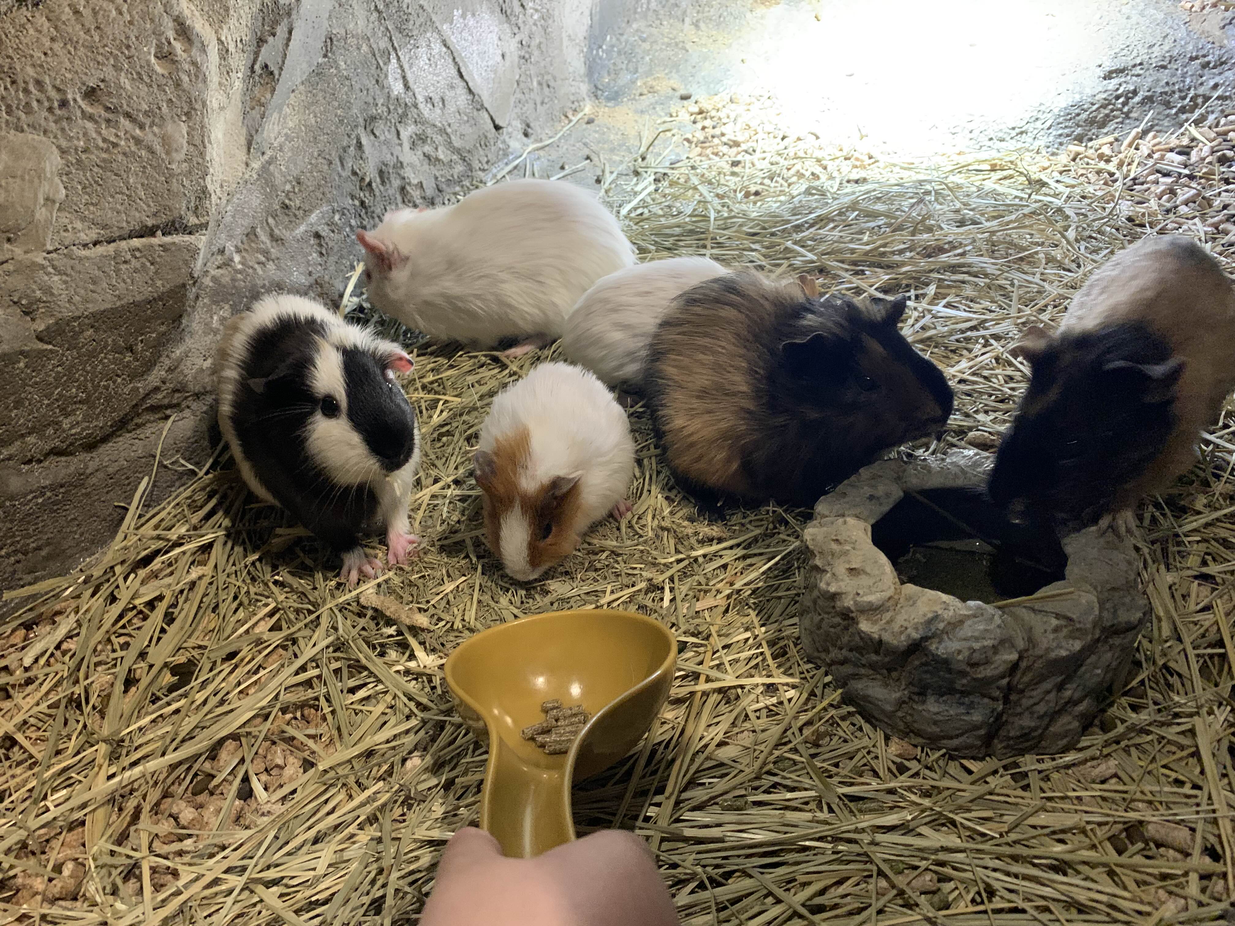 기니피그에게 사료를 줄수 있어서 아이들이 줄 서서 기다렸습니다.