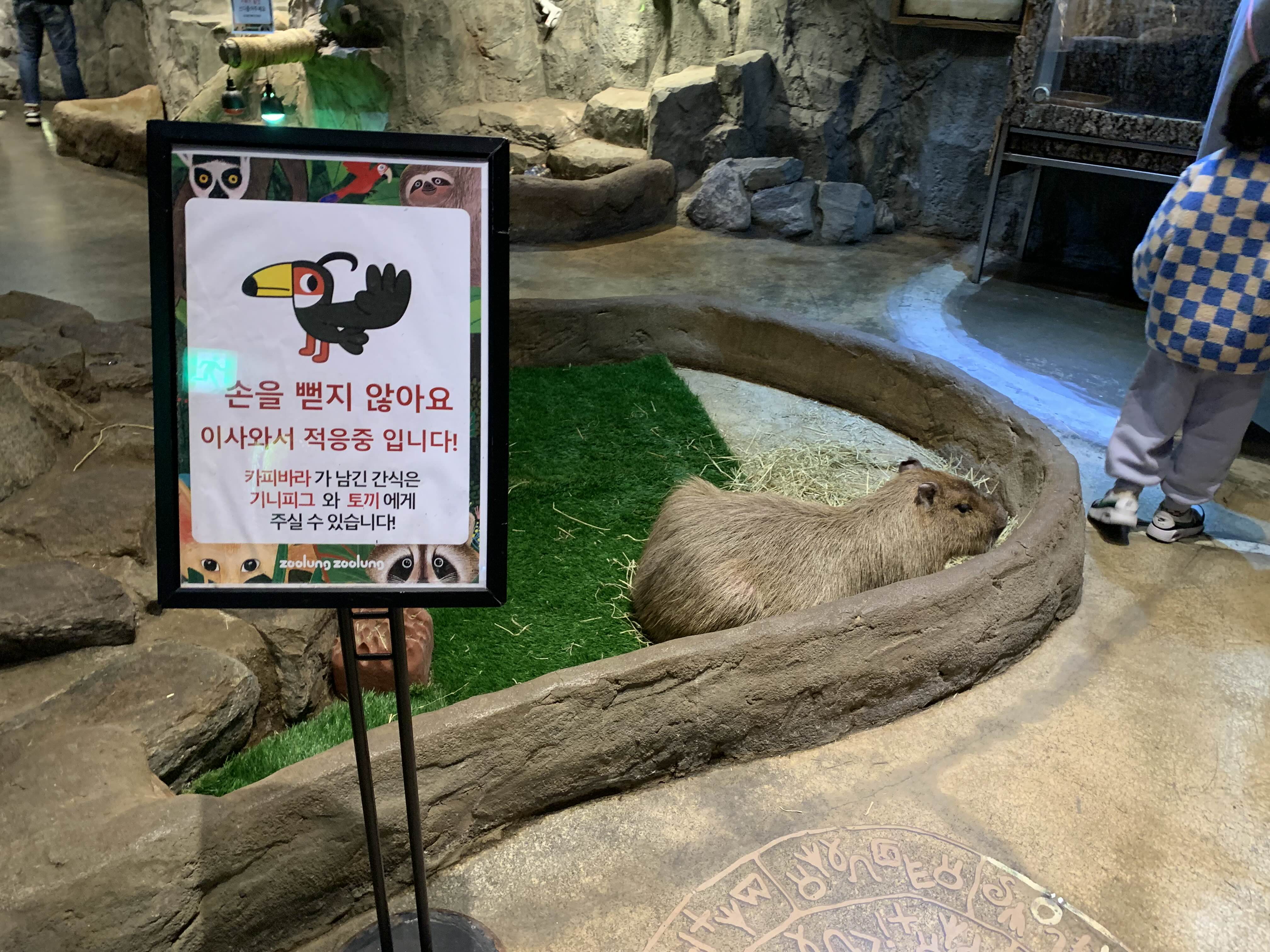 카피바라 친구는 이사 와서 적응 중이라 꼼짝도 하지 않고 있었습니다.