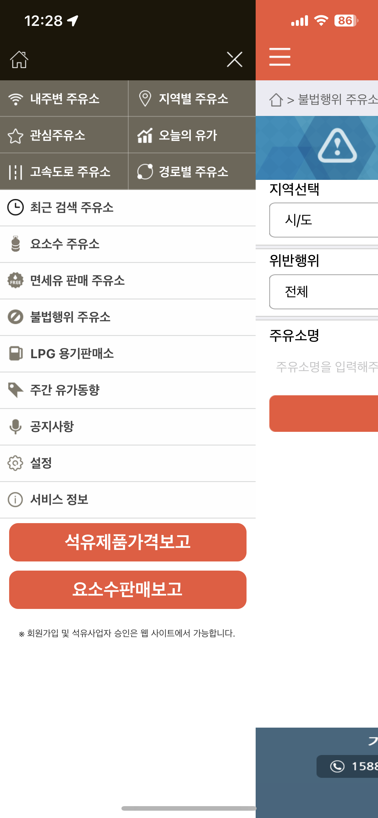 가짜 기름을 판매하는 불법 주유소 정보를 확인하실수 있습니다. 무조건 최저가라고 해서 좋은 것은 아닙니다. 정품, 정량 판매 주유소를 주유하기 전까지는, 주유를 하더라도 알 수 없는데, 불법적으로 운영하는 주유소를 알 수 있으며, 가짜 석유제품 신고도 할 수 있습니다.