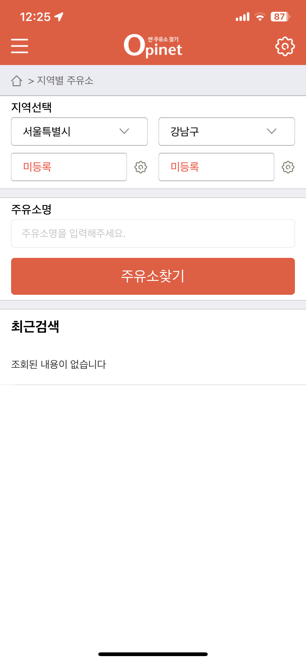 오피넷에서 지역별 주유소를 검색할수 있습니다. 주유소명을 알고 있다면 주유소명으로 검색이 가능하고, 특정 지역으로 설정하여 검색하면 해당 지역의 주유소 정보를 확인할 수 있습니다.