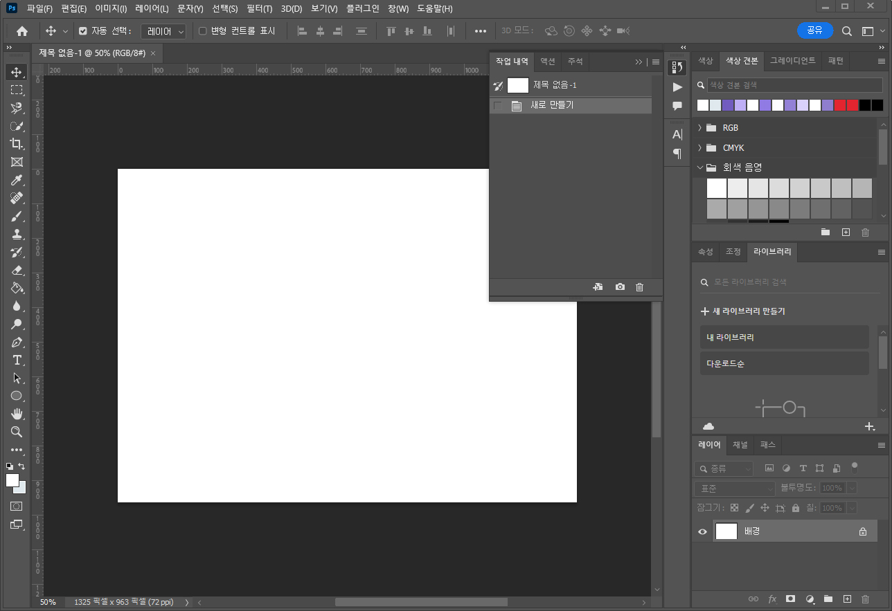 먼저 포토샵 프로그램을 실행시키면 저는 한글버전인 것을 알 수 있습니다.