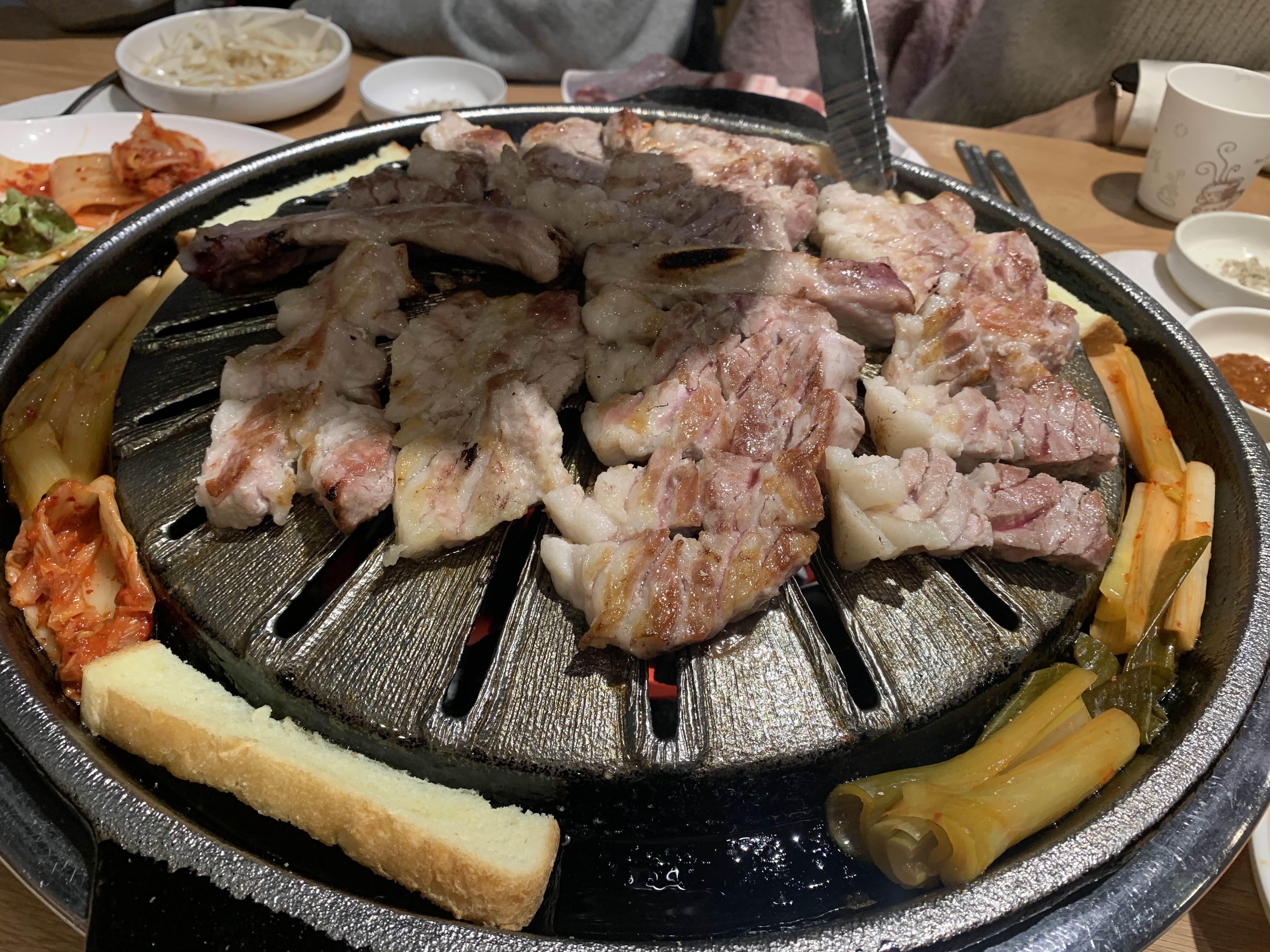 여기는 등갈비와 삼겹이 섞인 거라고 메뉴판에 쓰여 있네요.