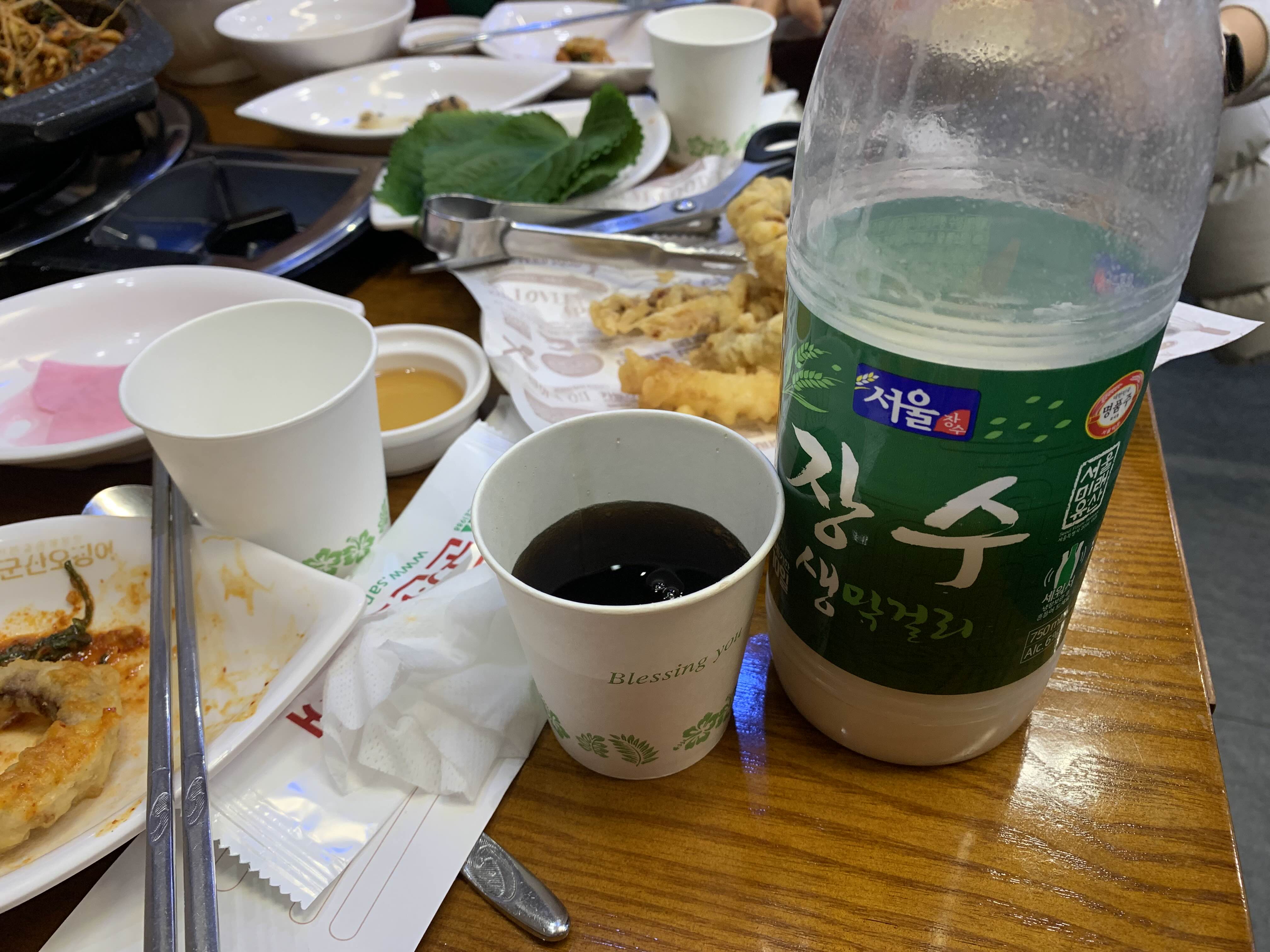 신년회라고 친구들이 막걸리 한병 주문하여 따라주고