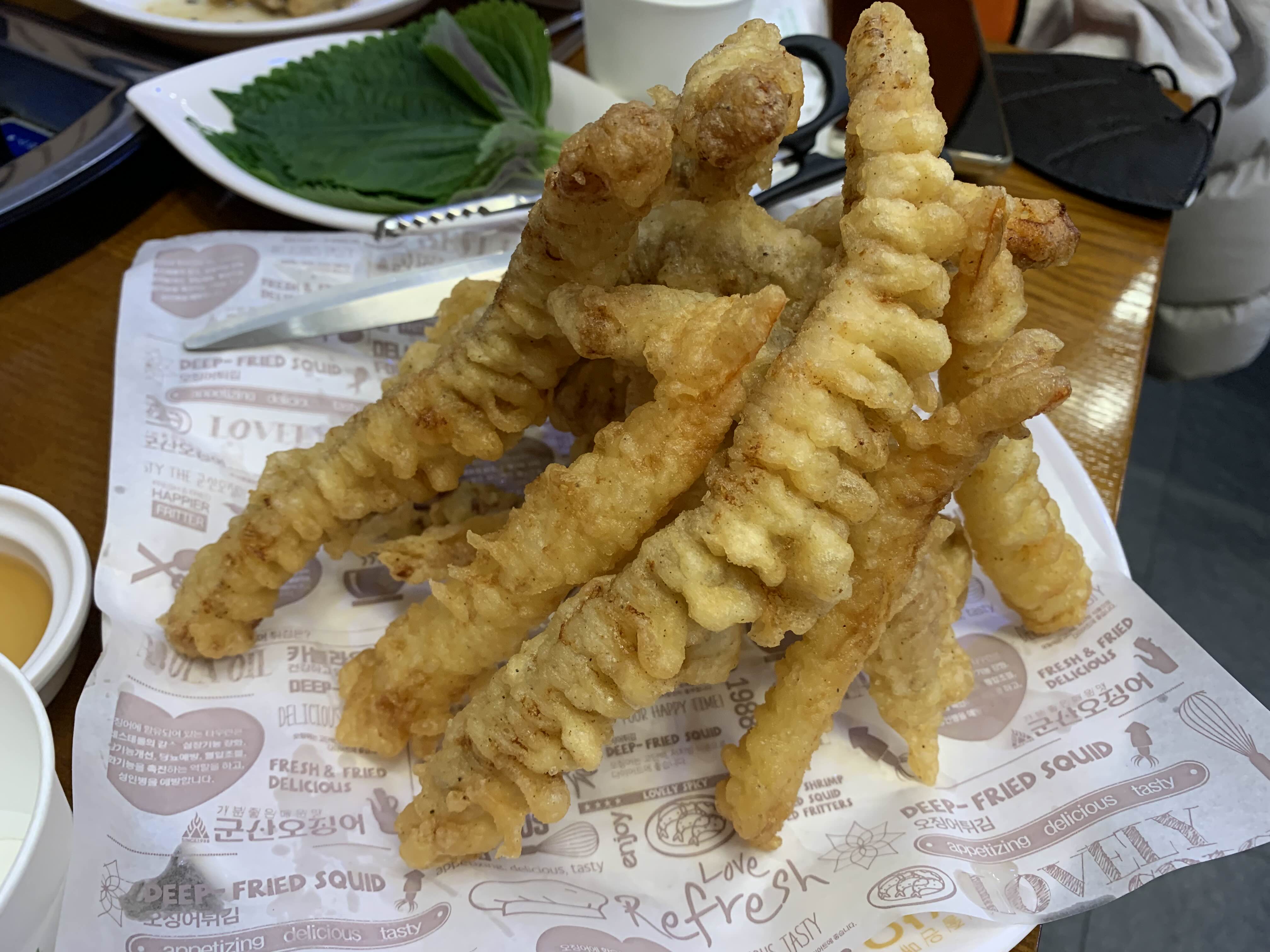 오징어와 새우튀김이 반반 튀겨진 오새튀김~